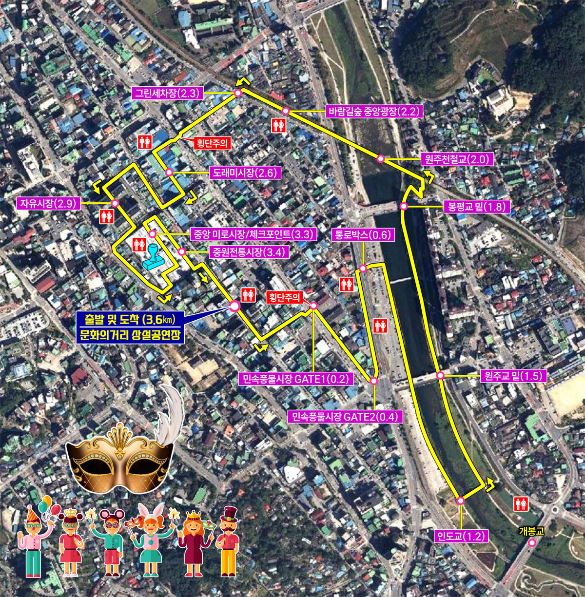 출발 ⇒ 민속풍물시장 ⇒ 원주천철교 ⇒ 바람길숲중앙광장 ⇒도래미시장 ⇒ 자유시장 ⇒ 미로시장 ⇒ 중앙시장 도착 - 모집인원 선착순 300명 (입금순)